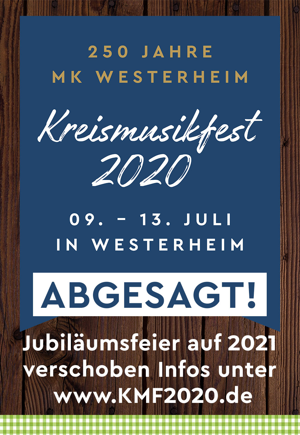 Das zum 250-jährigen Jubiläum der Musikkapelle Westerheim geplante 5-tägige Fest, vom 09.07. – 13.07.2020, wird nicht stattfinden. Die unausweichliche Entscheidung wurde in enger Abstimmung mit dem Blasmusik-Kreisverband Ulm/Alb-Donau, dem Landrat Herr Scheffold und Westerheims Bürgermeister Herr Walz getroffen. Ebenso abgesagt werden die Wertungsspiele in der Albhalle.