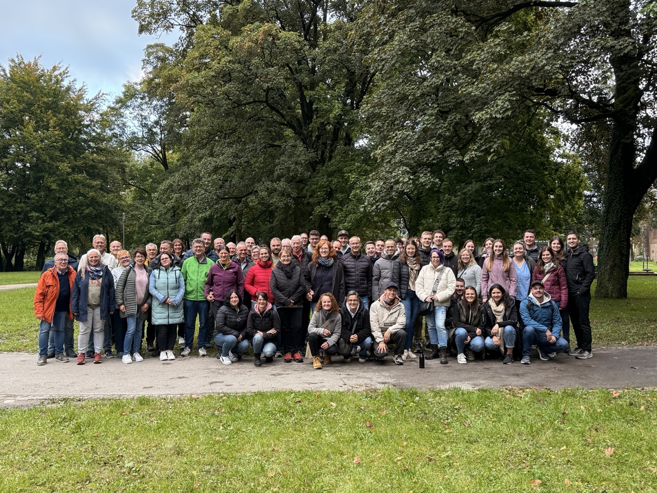 In Immenstadt angekommen zog es uns, trotz schlechtem Wetter, auf den Mittag. Die Einen liefen, die Anderen fuhren mit dem Sessellift und spazierten oben die letzten Meter zum Gipfelkreuz. Leider war die Aussicht durch den Nebel sehr begrenzt. Nach einer Rast in der Alm ging es am Nachmittag weiter nach Memmingen. Hier wartete eine Stadtführung auf uns.