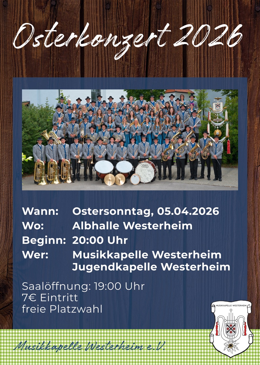am Ostersonntag, den 05. April 2026 um 20.00 Uhr, veranstaltet die Musikkapelle Westerheim ihr traditionelles Osterkonzert in der Albhalle Westerheim.