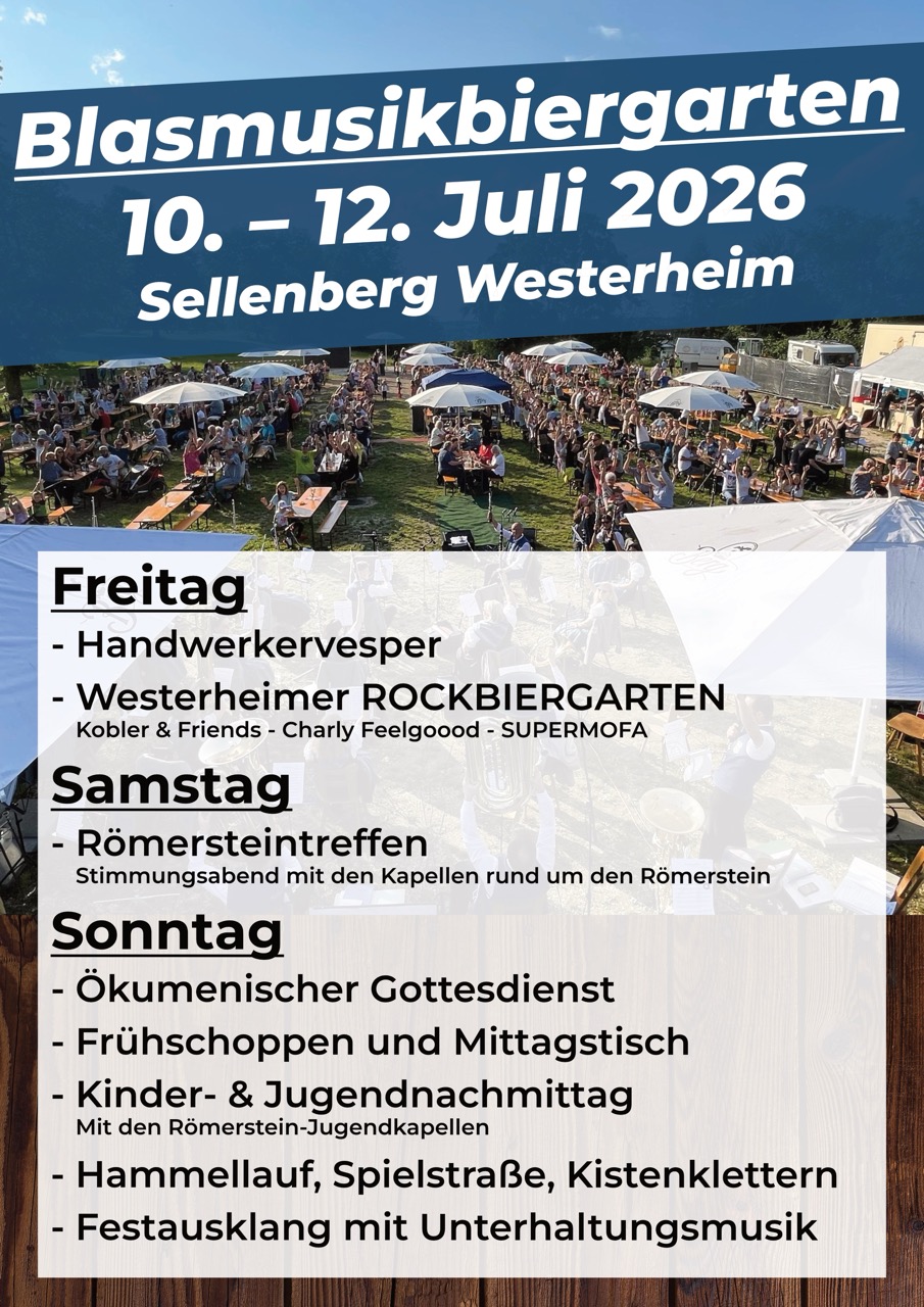 Vom 10. bis 12.07.2026, ist es wieder soweit – es heißt wieder Blasmusikbiergarten auf dem Sellenberg in Westerheim.