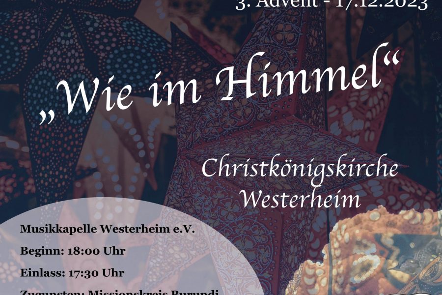 Adventliche Stunde – Wie im Himmel Lasst euch von himmlischen Klängen verzaubern und entgeht eine Stunde dem Alltag. Im Anschluss laden Punsch und Glühwein zum Gespräch ein